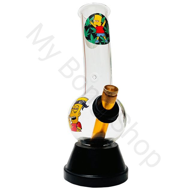 Looking for a compact and stylish way to smoke your herb? Look no further than the small glass bong with rubber base and Crazy Bart design! This must have bong adds a touch of fun to your smoking experience!